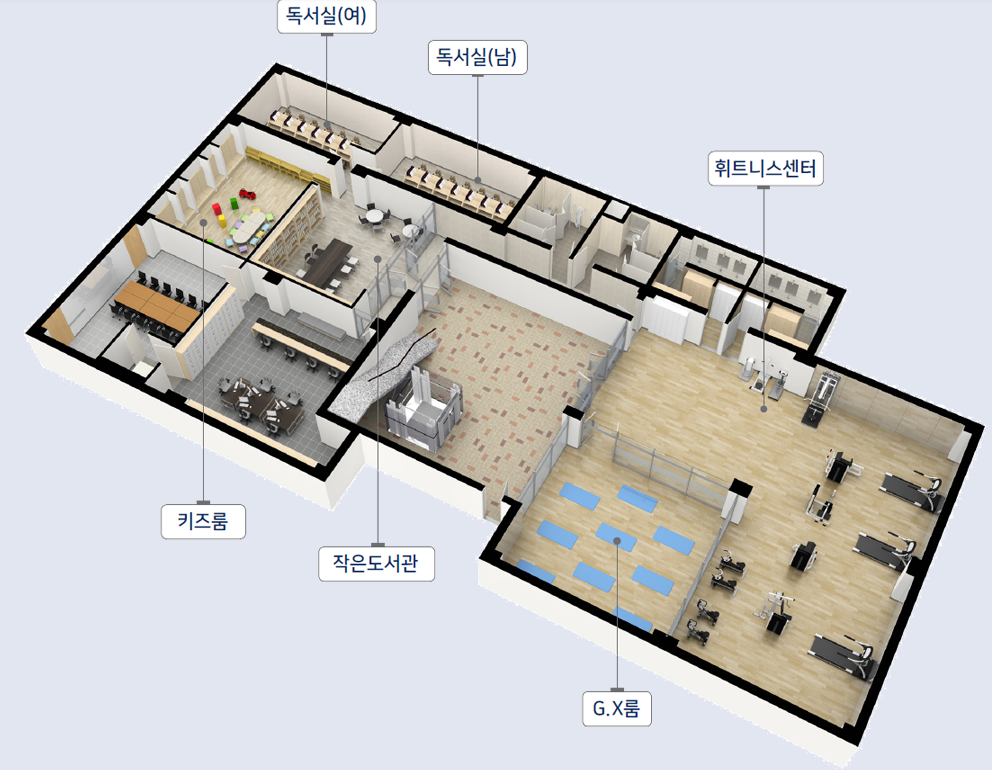 이외에 단지 내 커뮤니티 시설로는 GX룸, 피트니스 센터, 키즈룸, 독서실, 작은 도서관 등이 들어올 예정이며 단지 시스템으로 디지털 홈네트워크 시스템, 방문자 영상 녹화 시스템, 원격 검침 시스템, 부부욕실 스피커폰, 주차관제 시스템, 주방액정 TV, 첨단 디지털 도어록, 가스쿡탑(3구), 빌트인 레인지후드, 빌트인 광파오븐레인지, 세대환기 시스템, 일괄소등 스위치, 온도조절 시스템 등이 적용됩니다.