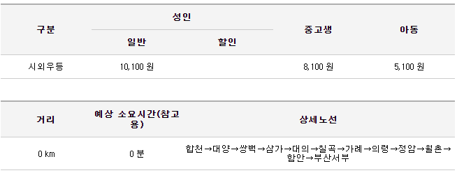 의령 시외버스 터미널 요금 및 예매