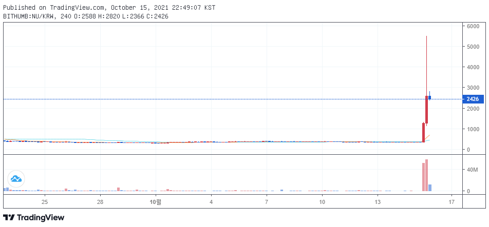 누사이퍼는 10월 15일 업비트에 상장하던 당시 가격은 314원으로 거래가 시작되었는데 지금은 2,550원에 거래되고 있습니다. 하지만 한 때, 만원까지 급등하면서 가격 상승률이 무려 3,000%까지 치솟았던 적이 있습니다. 주식시장에서는 상한가가 30%로 정해져 있기 때문에 3,000%의 가격 급등은 불가능한 일이고 한 때 가격 폭등으로 화제가 되었던 도지코인보다도 더 큰 상승률을 기록하면서 많은 관심을 모으고 있습니다.