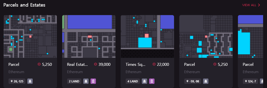 디센트럴랜드는 그 이름처럼 탈중앙화 가상 부동산 플랫폼으로 이더리움 블록체인 위에서 운영됩니다. 디센트럴랜드에서 유저들은 메타버스로 구축되어 있는 가상 세계를 탐험하면서 토지 거래를 통해서 토지를 소유하거나 매매하고 혹은 토지 위에 건물을 지을 수도 있습니다.